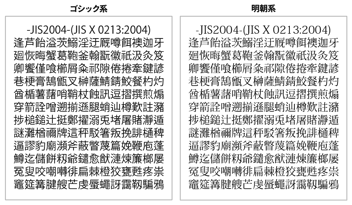 (例えば、「辻」という漢字はJIS90では1点しんにょうで表記されますが、JIS2004では2点しんにょうで表記されます。)
