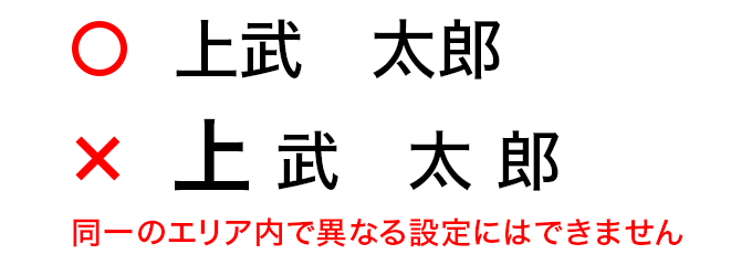 - 可変データ内の文字列をそのまま印刷いたしますので、スペースの半角と全角が混ざらないようご注意ください。