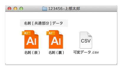 - 可変データ(名刺に印字する個人情報のCSVデータ)