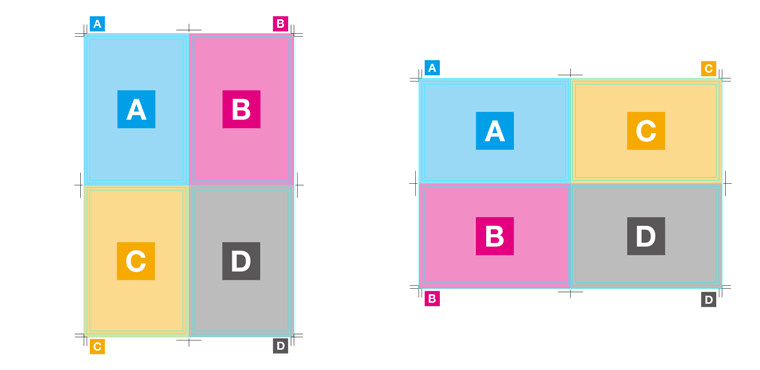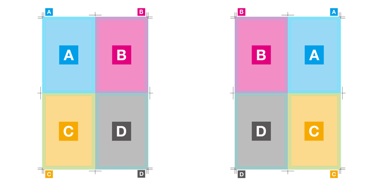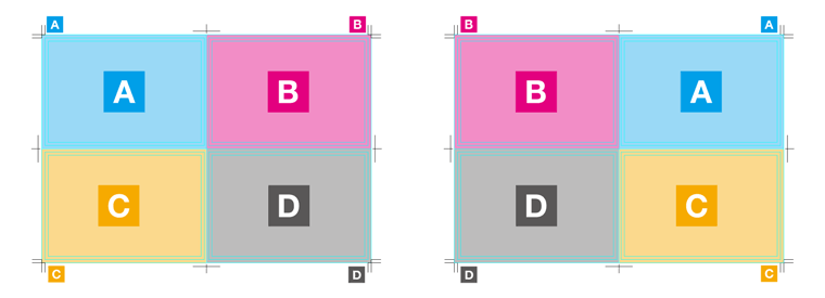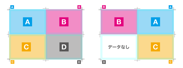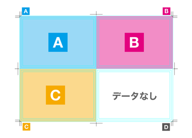※この場合Dのデザインは片面が白紙となり、片面印刷の仕上がりとなります。