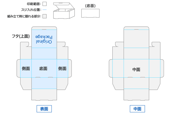 地獄底式の展開図については、図のとおりです。のりしろ部分以外のエリアについて、デザインすることが可能です。