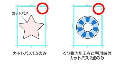 1データにつきカットパスは1点のみ、くり貫き加工のご利用時は2点のみ作成可能です。