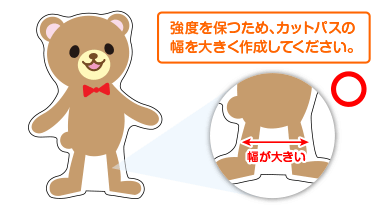カットパス間の幅(オブジェクトの形状)にご注意ください。パネルの強度を保つため、カットパス間の幅を大きく作成されることを推奨しております。