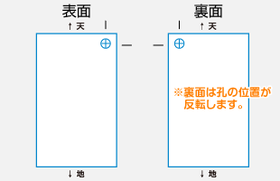 両面印刷される場合、表面と裏面では図の通り、孔開け位置が左右反対になります。ご注意ください。