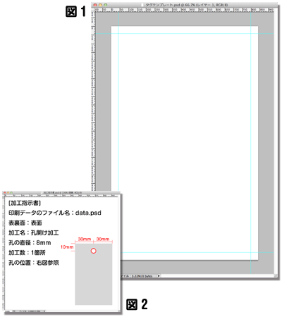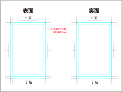 孔開け加工の位置指定については、画像データには表記せず、別ファイルにて加工指示書を添付してください。(図2)