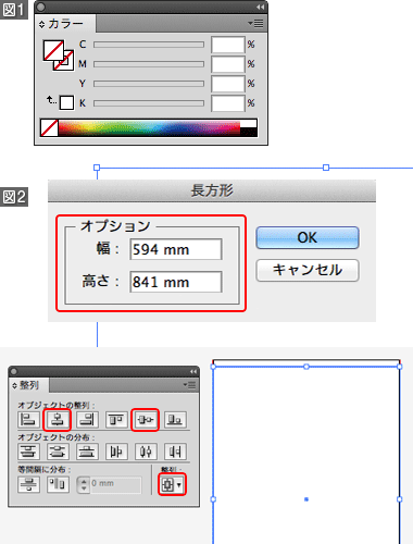 長方形ツールを選択後にアートボードをクリックすると「長方形ダイアログ」が開きます。(図2)