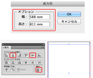作成した四角形をアートボードに対して真ん中に配置してください。