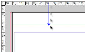 マウスポインターを、水平定規の内側に置き、ガイドを設置したい位置までドラッグします。