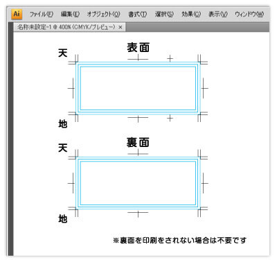 表面にミシン目の加工指示となる十字のオブジェクトを加えて頂く事にご注意頂き作成してください。
