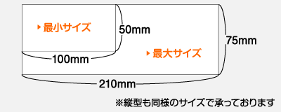 最小50mm×100mm~最大75mm×210mmの間で用途に合ったサイズで作成してください。