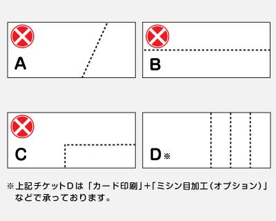 ※3本以上ミシン目を入れる場合は「カード印刷」+ミシン目加工オプション(5本まで)などや回数券印刷(ミシン目の位置固定)でご注文頂けます。