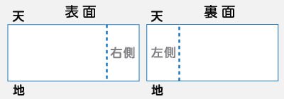 両面印刷される場合、表面と裏面では図の通り切り取られる部分のレイアウトが左右反対になります。ご注意ください。