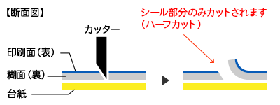 一筆書きに閉じられたカットパスをもとに、台紙からは切りはなさず、シール部分のみの切り込み(ハーフカット)を行います。