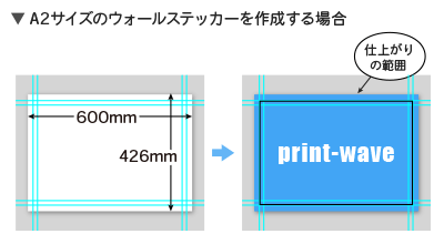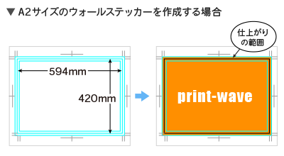 ウォールステッカー印刷(ハーフカット複数)のテンプレート - ハーフカット1点(自由カット)を定型サイズで作成される場合:A2/A1/A0/900×1800/900×2350