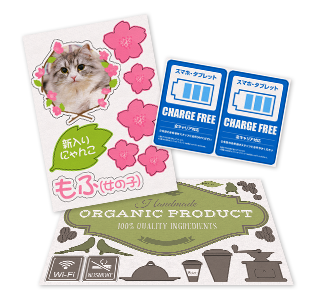 自由なデザイン・形状の壁紙シールを作ることができます。キャラクターやモチーフに沿った形のステッカーがA5サイズから等身大サイズまで作れます。