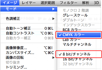 ![[イメージ]→[モード]→[CMYKカラー]、階調[8bit/チャンネル]](../../images/data/photoshop/colormode_01.png)