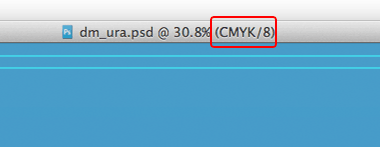 ドキュメントのカラーモードは、Photoshopのウインドウ上部にも表示されます。(右図)