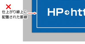 仕上がり線上に、罫線が配置されている場合、仕上がった印刷物の紙端に、この罫線が入ってしまう(または、切れてなくなってしまう)場合があります。