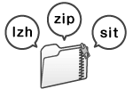 LHA形式:拡張子(.lzh) / ZIP形式:拡張子(.zip)/ SIT形式:拡張子(.sit または .sitx)
