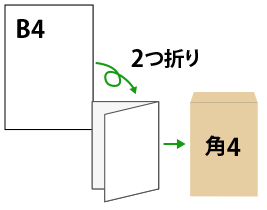 B4サイズを折らずに郵送するには、角1封筒に入れて、定形外郵便(規格外)を利用します。