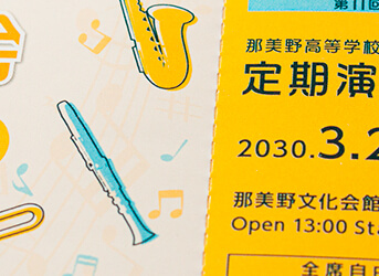 ミシン目加工込みで自由なサイズ設定が可能な「チケット印刷」。オフセット印刷なら最大5万部までご対応、オンデマンド印刷なら豊富な紙種(16種類)からお選びいただけます。