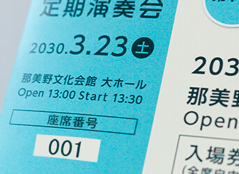連続した数字を印字できる「連番印字」、異なる文字列を印字できる「バリアブルテキスト印字」もオプションでご対応可能です。映画や演劇のチケットはもちろんコンサートやライブ等、様々な用途にご利用ください。