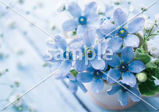 澄んだ美しい青色のブルースター。花びらは星形をしていて、その可愛らしさから人気があります。「幸福な愛」「信じ合う心」といった花言葉があり、結婚式のブーケなどに使われます。