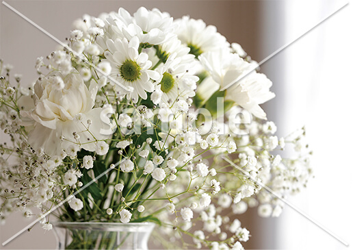 小さな花が集まって咲いている様子が可憐でかわいらしいカスミソウ。どんな花とも相性がよくアレンジメントにはかかせません。花言葉は「感謝」「幸福」「純潔」などがあります。