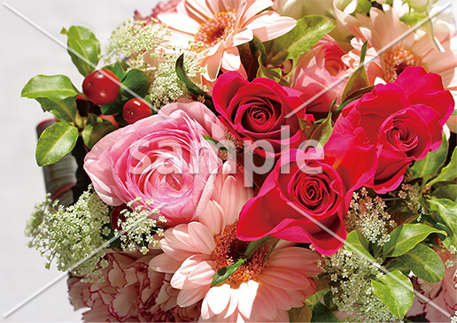 暖色系の花でまとめた温かみのあるアレンジメントです。情熱的な赤いバラには「あなたを愛しています」という花言葉があり、いつの時代も大切な人に真っ直ぐな思いを伝えます。