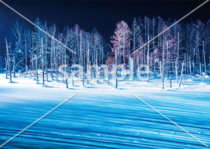 北海道美瑛町にある水面が青く見える池です。夏の景色が有名な場所ですが、冬のライトアップでは凍った水面に被る雪を照らし出し幻想的な色合いで楽しませてくれます。
