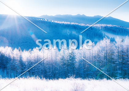 冷却された霧の粒が風で木などに吹き付けられ、その刺激で氷となって付着したものを霧氷と言います。冬の澄み切った空気の中照らされる霧氷は、木々に白い花が咲いているように美しい光景となります。
