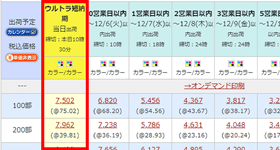 ウルトラ短納期料金より、ご希望の部数の料金をクリックして注文に進んでください。