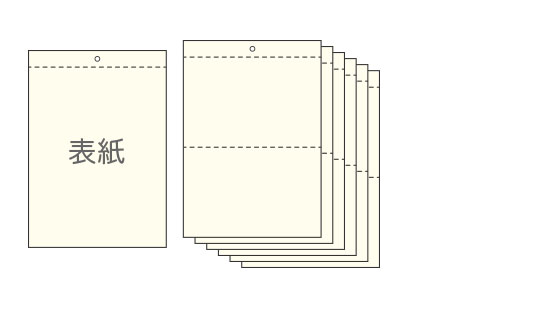 - 本文にミシン目が入ります。表紙/裏表紙には、ミシン目は入りません。