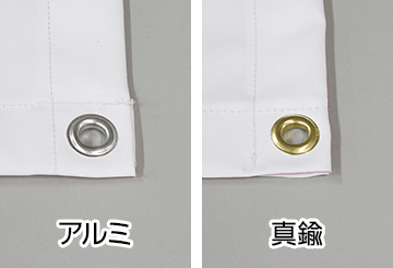 横断幕/懸垂幕を紐などで張り、固定できるハトメ加工のオプションが選択いただけます。