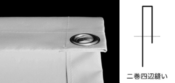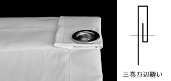 トロマットは幕の四辺を三つ折りにし、縫製する三巻縫製に仕上げます。