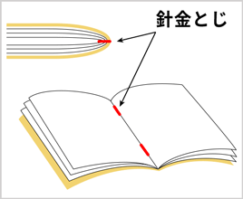 ※針金がないもの(丁合のみのもの)はスクラム製本と言います。