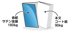 例えばマットコート紙90kgの本文にコート紙180kgの表紙といった組み合わせが可能です。(表紙は本文と同等以上の厚みである必要があります。)