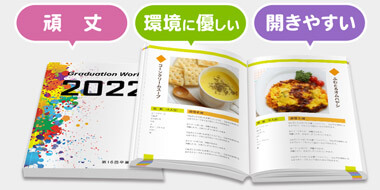 ソフトカバーとも呼ばれる、簡易的な製本方法です。リーズナブルに冊子の作成ができます。