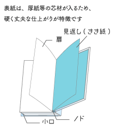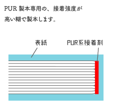 針金や糸を使わず、背の部分を糊で綴じる製本方法で、ページ数によって背幅サイズが変わるのが特徴です。