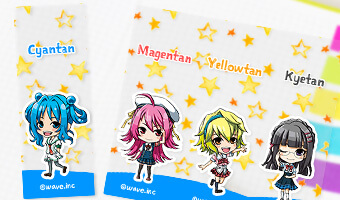 連なったデザインをミシン目で切り分けてお使いいただけます。ご使用の際は一度ミシン目に沿って折るときれいに切り取れます。リーズナブルで同人グッズにもオススメです。
