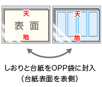 しおりと台紙をOPP袋に封入(台紙表面を外側)しおりと台紙をOPP袋に封入(台紙表面を内側)