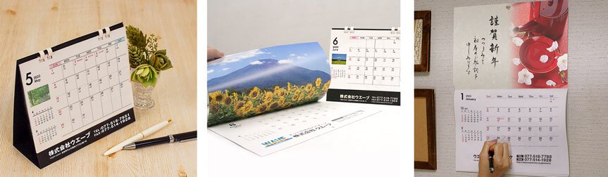 ウエーブのカレンダー印刷は名入れタイプ・卓上タイプ・壁掛けタイプをご用意しております。