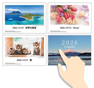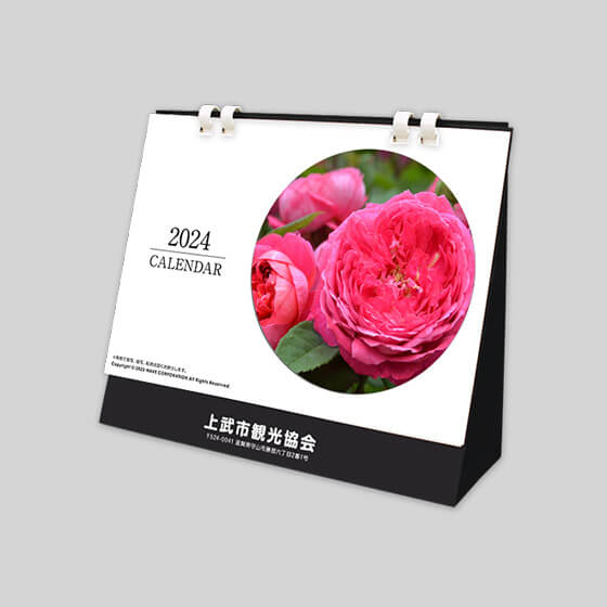 お客様のデザインデータでお作りするカレンダーと、名入れカレンダーがございます。なお、形状は卓上タイプと壁掛けタイプがございます。
