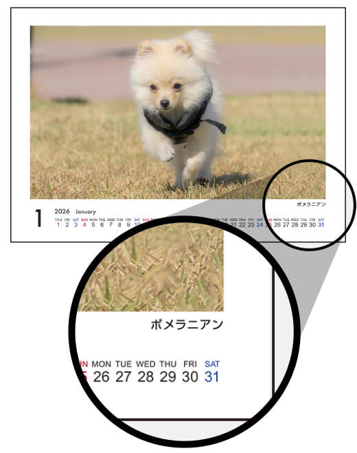 フォントやレイアウトなど、細部までこだわってデザインしたカレンダーにお客様の写真を配置し名入れをいたします。