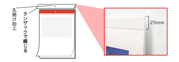 タンザック(厚紙)で綴じた後、孔開け加工(6mm)を施します。