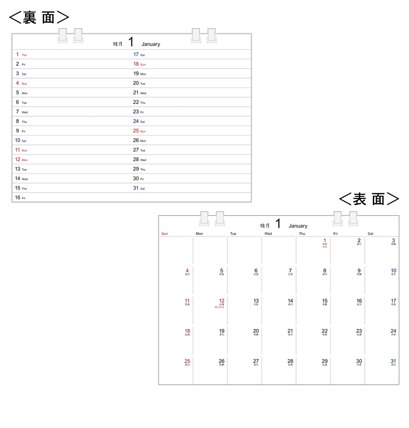ECO壁掛けカレンダー(タンザック):A2壁掛け