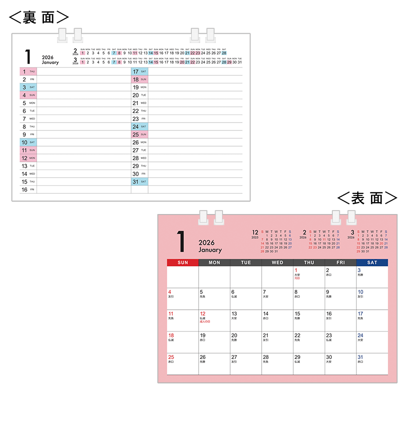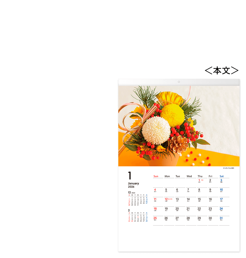 年末年始の挨拶や販促品として、名入れカレンダーは非常に効果的なツールです。年間を通して使用されるカレンダーは、受け取った方の日常に寄り添い、企業名を常に意識してもらうことができます。オフィスに最適な卓上カレンダーから、家庭で使いやすい壁掛けカレンダーまで、豊富な種類を取り揃えております。