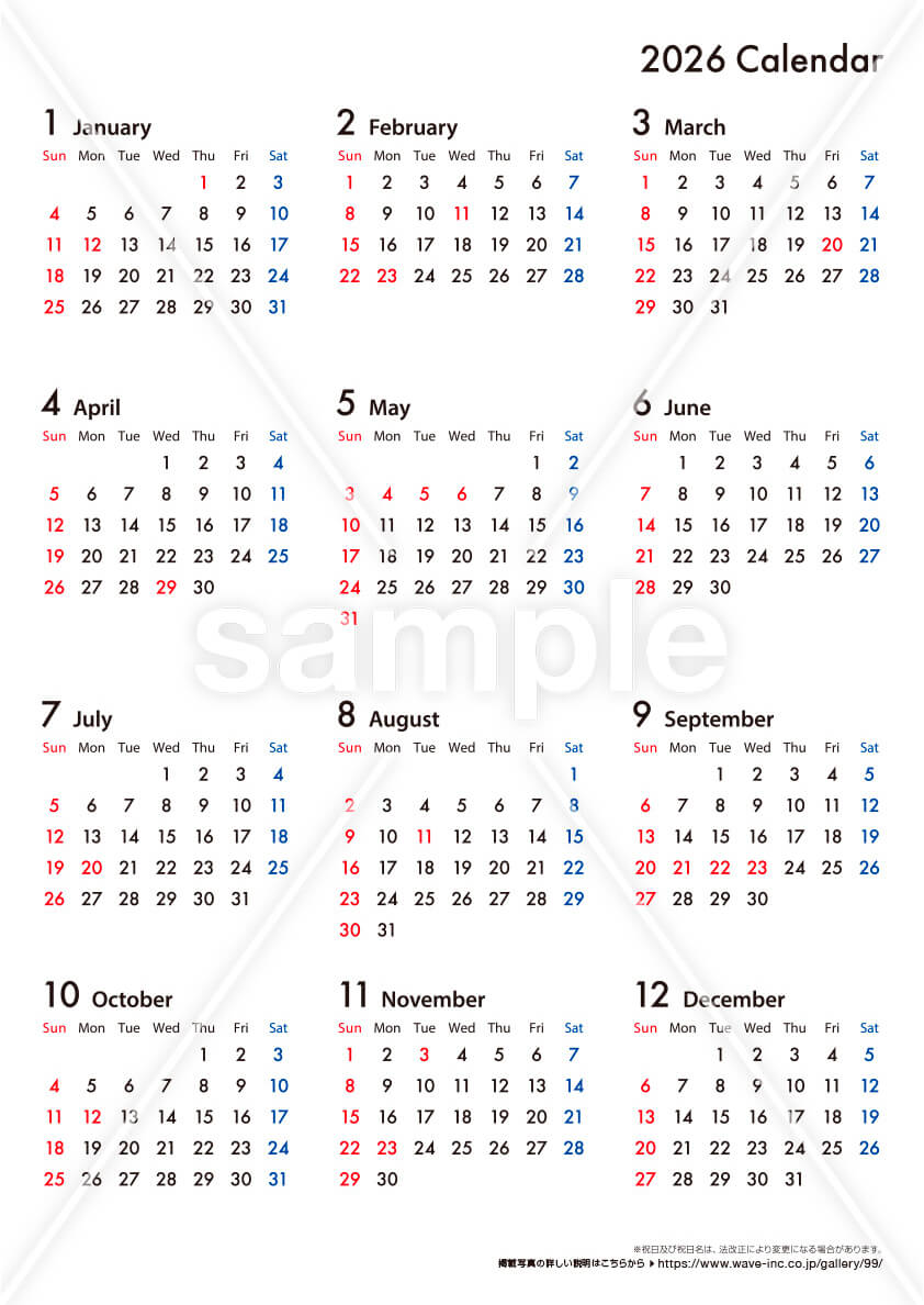 - 年間カレンダーに、WAVEデザインカレンダーシリーズ紹介サイトURLが記載されます。当商品で使用されている各写真の詳しい説明をご覧いただけます。