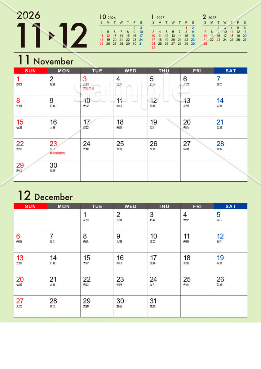 - 16P(1月2月+3月4月+5月6月+7月8月+9月10月+11月12月+年間カレンダー)