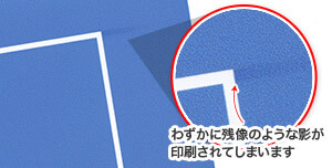 品質管理には最善の注意を払っておりますが、色ベタの中に白抜きをしたようなデザインの場合、用紙や印刷色によっては、わずかに残像のような影が印刷されてしまう場合があります。(イメージ:右図)
